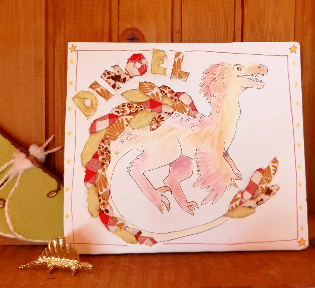 À l'aide de tissus de récup', venez créer votre propre carte textile dinosaure !